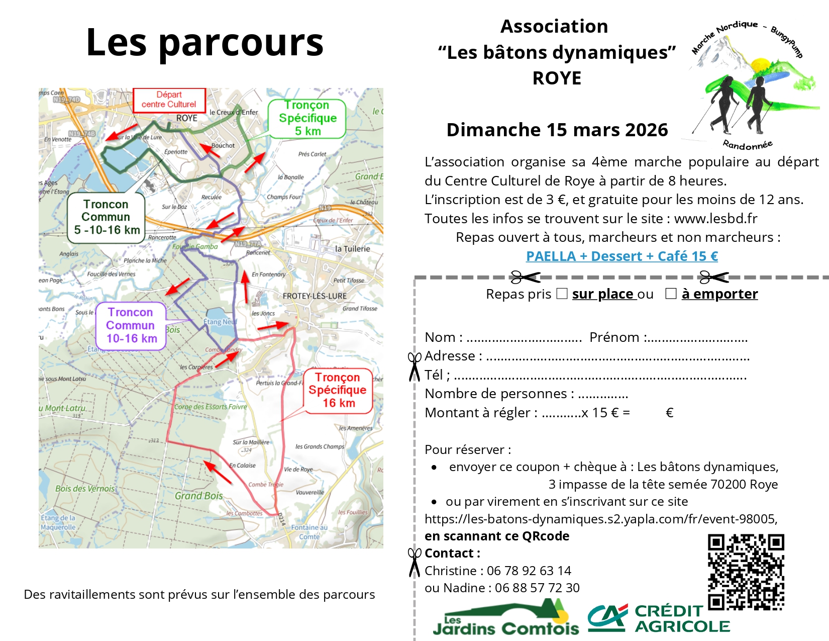 - le Dimanche 15 Mars Les bâtons Dynamiques organisent leur quatrième marche populaire ; 3 circuits sont proposés 5 km , 10 km et 16 km. :