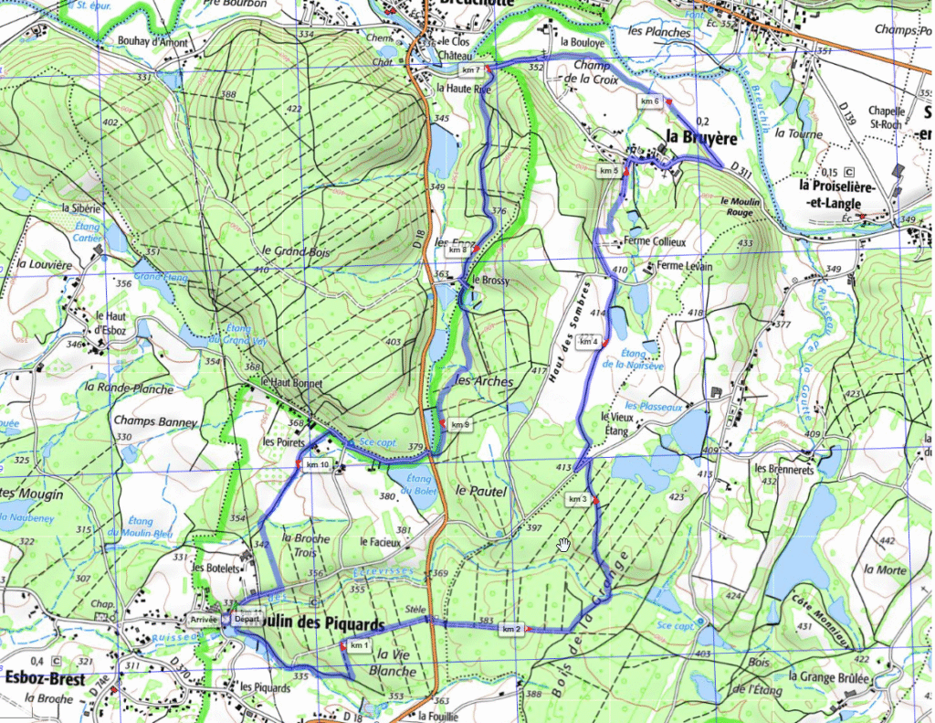 Départ du parking de la Mairie de La Bruyere (GPS N47.809401 E6.456024 )